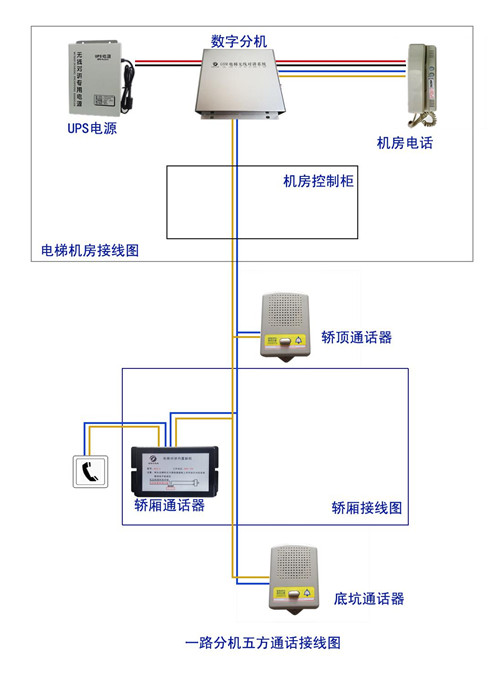 4、一棟樓只需要用一個分機,分機多可帶四部電梯,主機可以分辨具體哪一部電梯