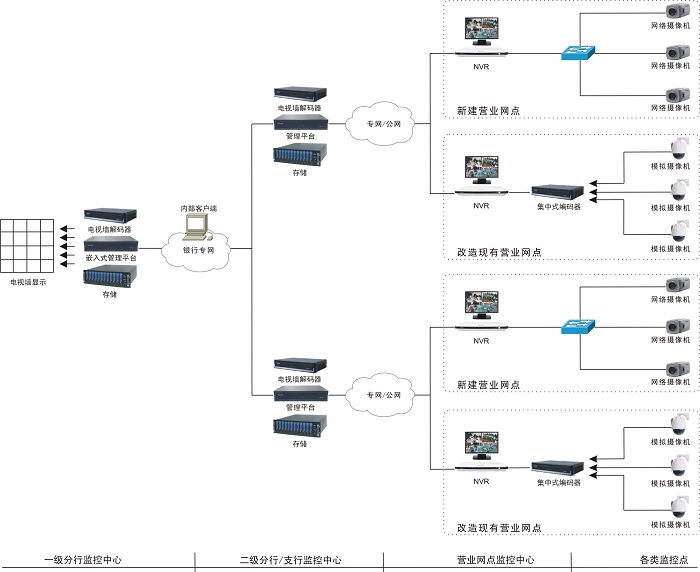 · 空間租用:運營商通過異地部署NVR,構建基于NVR的管理平臺,客戶租用運營商提供的存儲空間,實現(xiàn)數(shù)字圖像的存儲功能;