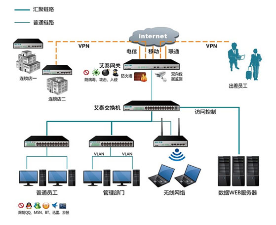 隨著經(jīng)濟(jì)的發(fā)展,連鎖經(jīng)營(yíng)在全國(guó)得到了大規(guī)模的發(fā)展。連鎖經(jīng)營(yíng)模式的重點(diǎn)在零售、餐飲和服務(wù)三個(gè)行業(yè)。其中,零售行業(yè)是連鎖經(jīng)營(yíng)應(yīng)用為成熟的行業(yè),餐飲業(yè)特許經(jīng)營(yíng)的發(fā)展也不可小視,服務(wù)業(yè)的連鎖經(jīng)營(yíng)作為連鎖經(jīng)營(yíng)新的拓展領(lǐng)域,發(fā)展勢(shì)頭十分強(qiáng)勁。特別是加入了加入世界貿(mào)易組織后,我國(guó)將與世界進(jìn)步進(jìn)一步的融合,勢(shì)必,行業(yè)競(jìng)爭(zhēng)將更加激烈,它為我國(guó)連鎖經(jīng)營(yíng)的發(fā)展注入了新的動(dòng)力。而完善的物流配送體系的建立將解決長(zhǎng)期以來(lái)制約我國(guó)連鎖企業(yè)發(fā)展的瓶頸問(wèn)題。艾泰科技向客戶提供優(yōu)秀的網(wǎng)絡(luò)設(shè)備和解決方案。其開發(fā)的VPN產(chǎn)品能夠充分利用現(xiàn)有的網(wǎng)絡(luò)資源,提供經(jīng)濟(jì),靈活的聯(lián)網(wǎng)方式,為客戶節(jié)省設(shè)備、人員和管理所需的投資,能夠利用無(wú)處不在的Internet通過(guò)單一網(wǎng)絡(luò)結(jié)構(gòu)為各連鎖店間提供無(wú)縫和安全的連接,減輕了企業(yè)遠(yuǎn)程訪問(wèn)費(fèi)用的負(fù)擔(dān),并且提供了安全的端到端的數(shù)據(jù)通訊。