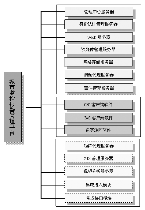 城市監(jiān)控報警聯(lián)網(wǎng)管理平臺軟件組成結(jié)構(gòu)圖