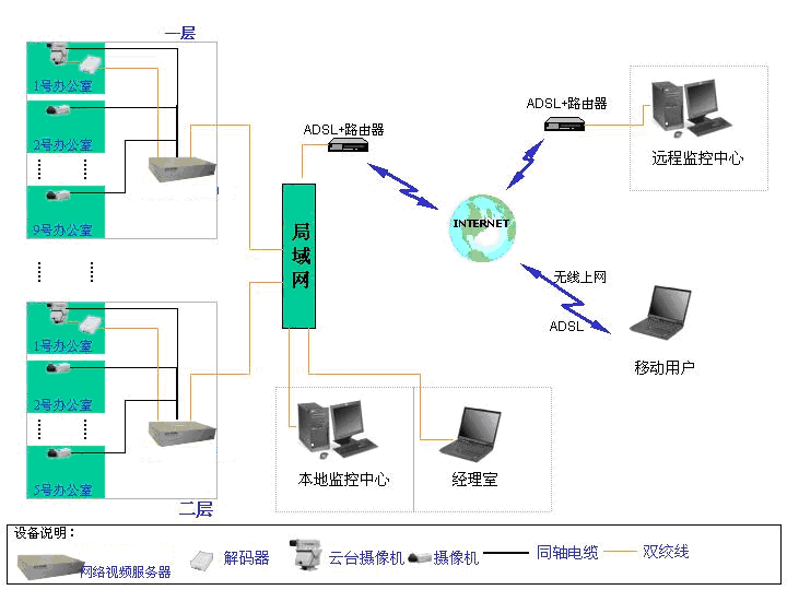 遠(yuǎn)程監(jiān)控:對于跨地區(qū)大中型企業(yè),除本地建立網(wǎng)絡(luò)監(jiān)控系統(tǒng)外,還需要對分支機(jī)構(gòu)進(jìn)行集中遠(yuǎn)程視頻監(jiān)控。