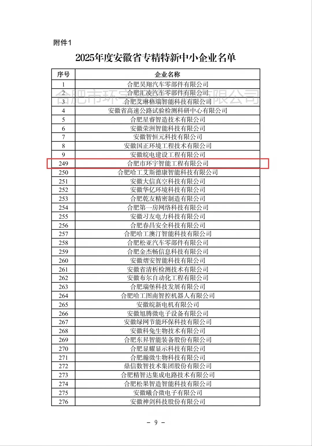 近日,安徽省工業(yè)和信息化廳正式公布了《2025年度安徽省專精特新中小企業(yè)名單》,經(jīng)過企業(yè)申報(bào)、逐級審核、第三方評審、社會公示等嚴(yán)格程序,合肥市環(huán)宇智能工程有限公司憑借在智能化工程領(lǐng)域的技術(shù)創(chuàng)新、專業(yè)服務(wù)與精細(xì)化管理,成功入選2025年安徽省“專精特新”中小企業(yè)名錄,標(biāo)志著公司在專業(yè)化、精細(xì)化、特色化、創(chuàng)新能力等方面獲得了省級權(quán)威認(rèn)可。